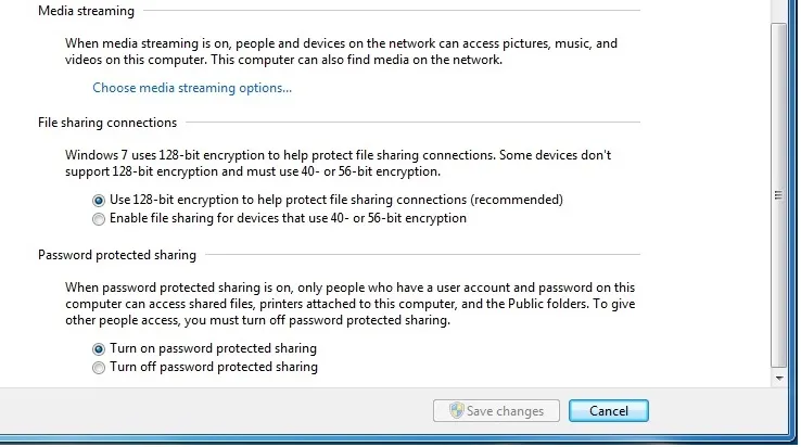Bạn đang muốn tắt chức năng Password protected Sharing mối lần bạn chọn chức năng Turn off password protected sharing thì sau khi bạn Save changes nó vẫn trở lại chế độ Turn on password protected sharing.