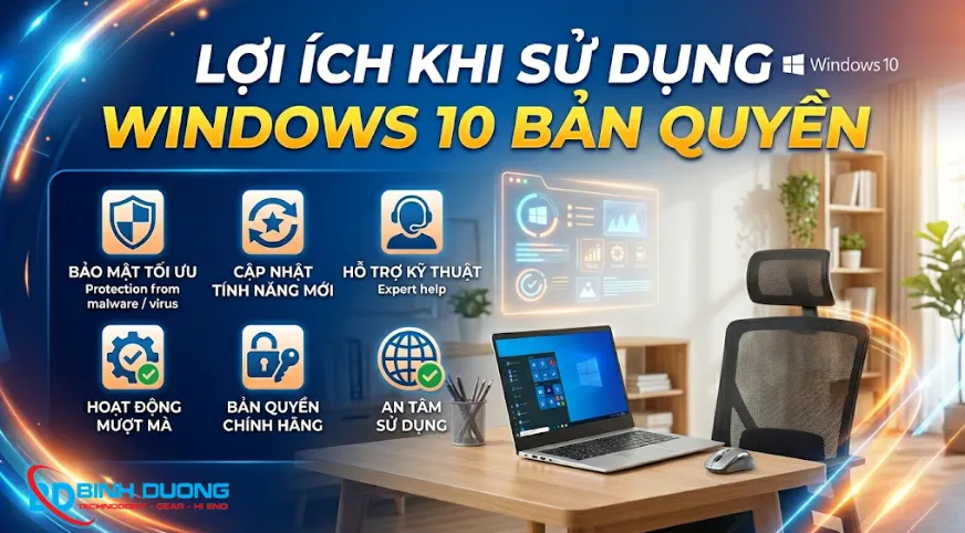 Việc sử dụng Windows 10 bản quyền mang lại nhiều lợi ích về bảo mật, hiệu suất và độ ổn định. Đây là lựa chọn phù hợp cho người dùng muốn sử dụng máy tính lâu dài và an toàn.