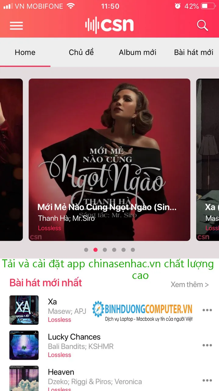 Bài viết trên Bình Dương Computer đã hướng dẫn cách tải, cài đặt app chiasenhac.vn. Bài viết này mong rằng tại các giao diện hoàn toàn mới. Các bạn sẽ thỏa nghe nhạc online chất lượng cao và